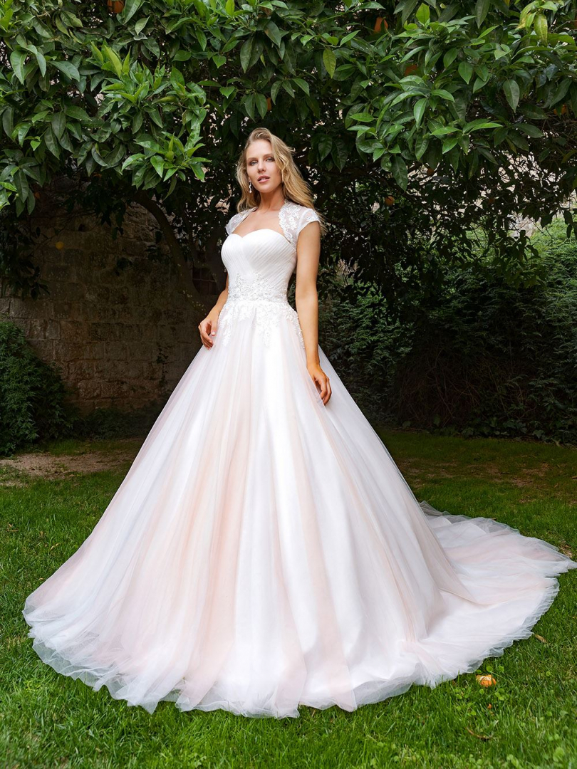 Hochzeitskleider im Princess- oder Duchesse Stil sind romantisch und - wie der Name verrät - haben gleichzeitig etwas prinzessinnenhaftes, majestätisches an sich. Gekennzeichnet sind Kleider dieses Schnitts durch ein figurbetontes Oberteil und einen weit aufgestellten, glockenförmigen Rock, unter dem sich ein weiter Reifrock befindet. Beim Princess Deluxe Stil ist der Rock des Kleides besonders voluminös. Das Oberteil des Kleides ist meist eine Corsage, verziert mit vielen Details, wie Schmucksteinen, Spitze oder Wickeleffekten. In Kombination mit einer Schleppe wirkt das Princess oder Duchesse Kleid besonders prunkvoll. Ein breites Becken kann mit diesem Modell kaschiert, eine schlanke Taille betont werden. Der Princess Stil eignet sich für Frauen mit kleiner und großer Oberweite gleichermaßen. Kleine Frauen sollten auf Verzierungen auf dem Rockteil verzichten. Spitznamen wir “Sissi Brautkleid” oder “Cinderella Look” zeigen: Für eine Märchenhochzeit ist dieses Brautkleid Modell ein absolutes Muss!
