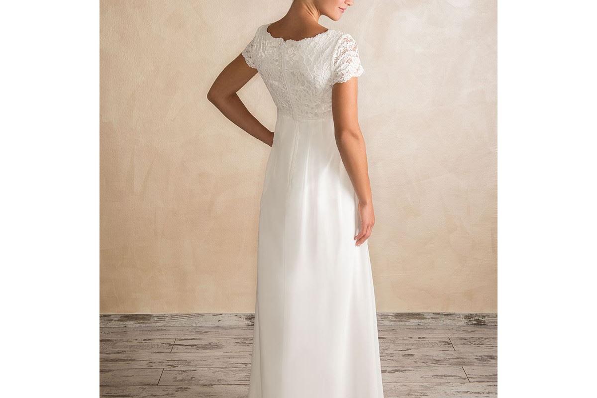 Sehen Sie sich um in unserer Auswahl exemplarischer Brautkleider, die sich durch ihren besonderen Schnitt besonders als Umstandsbrautkleid eignen und finden Sie Ihr Traum- Umstands-Hochzeitskleid.